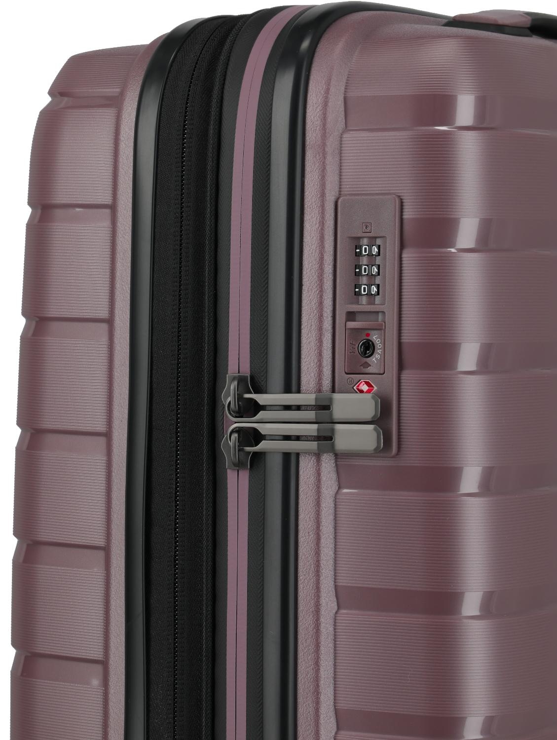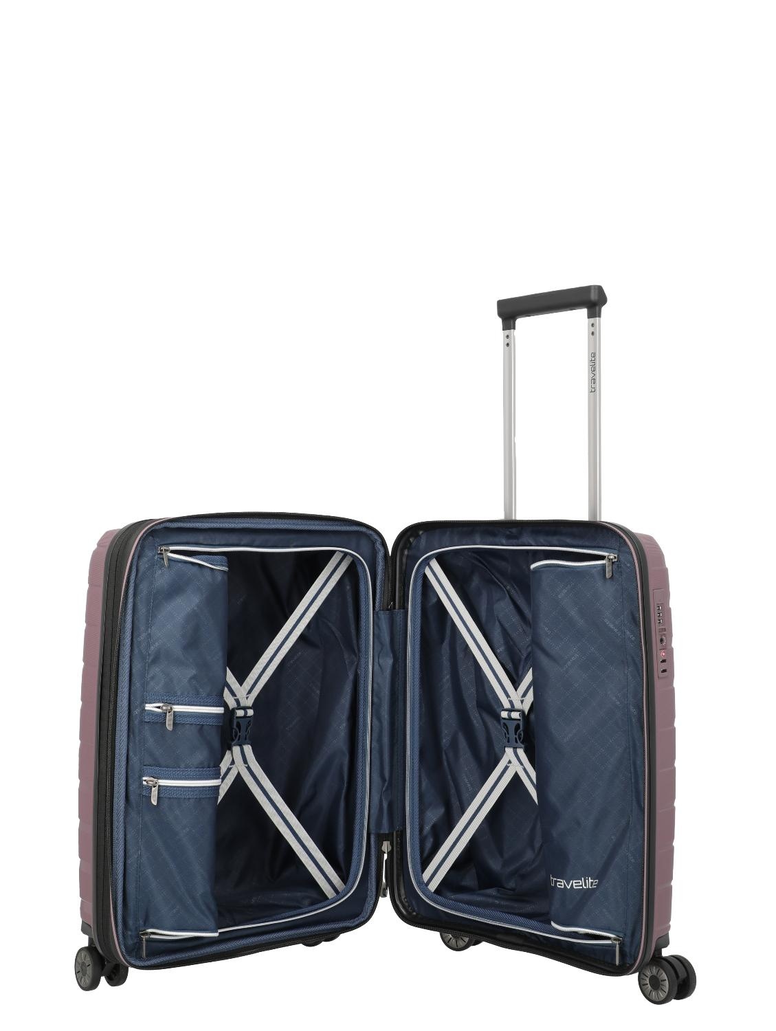 Binnenin vind je een praktische indeling met gekruiste pakriemen en een afsluitbaar ritscompartiment, zodat je alles overzichtelijk en veilig opbergt. Je bagage is bovendien goed beschermd dankzij het geïntegreerde TSA-cijferslot – ideaal voor reizen naar of via de Verenigde Staten.