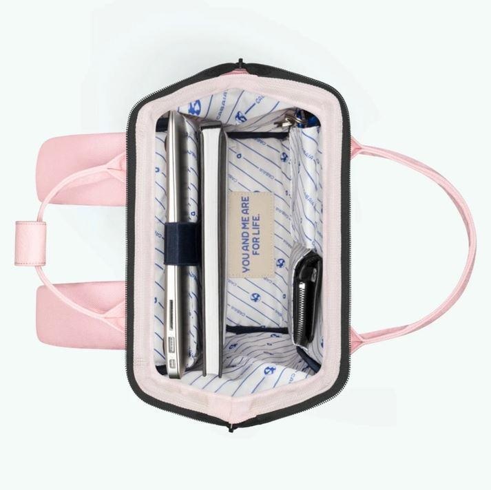 Deze stijlvolle compacte rugzak is ideaal voor wie licht wil reizen, maar niets wil missen aan comfort en functionaliteit. Verkrijgbaar in verschillende kleuren en met verwisselbare accessoires voor een persoonlijke touch.