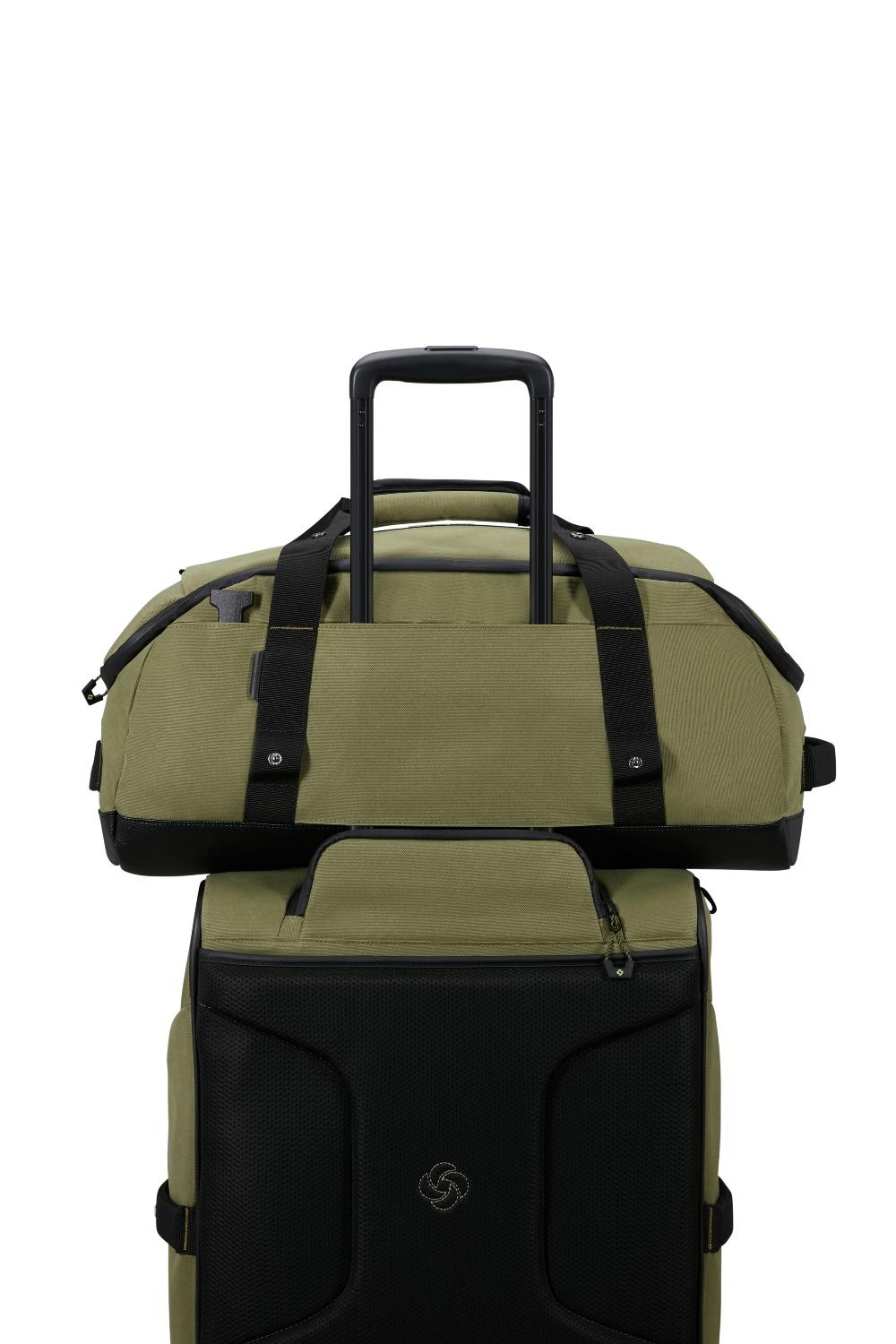 Deze Samsonite Ecodiver Duffle S (157618 A789 Waxed Wasabi) is de kleinste maat reistas uit de Ecodiver serie. Met de inhoud van 40 liter is deze reistas geschikt als handbagage in het vliegtuig of voor een weekendje weg. Dit formaat is tevens erg geschikt als sporttas. Het hoofdcompartiment is volledig te open door de doorgelopen ritssluiting en binnenin bevindt zich aan de zijkant een mesh vak met rits. Er bevinden zich twee handvatten aan de zijkant en een extra handvat op de bovenzijde. Dankzij de ergonomische schouderriemen kun je deze reistas ook comfortabel als rugzak gebruiken. Daarnaast is de reistas gemakkelijk te dragen door de afneembare en verstelbare schouderriem. Aan de voorzijde van de reistas bevind zich nog een vak met rits.