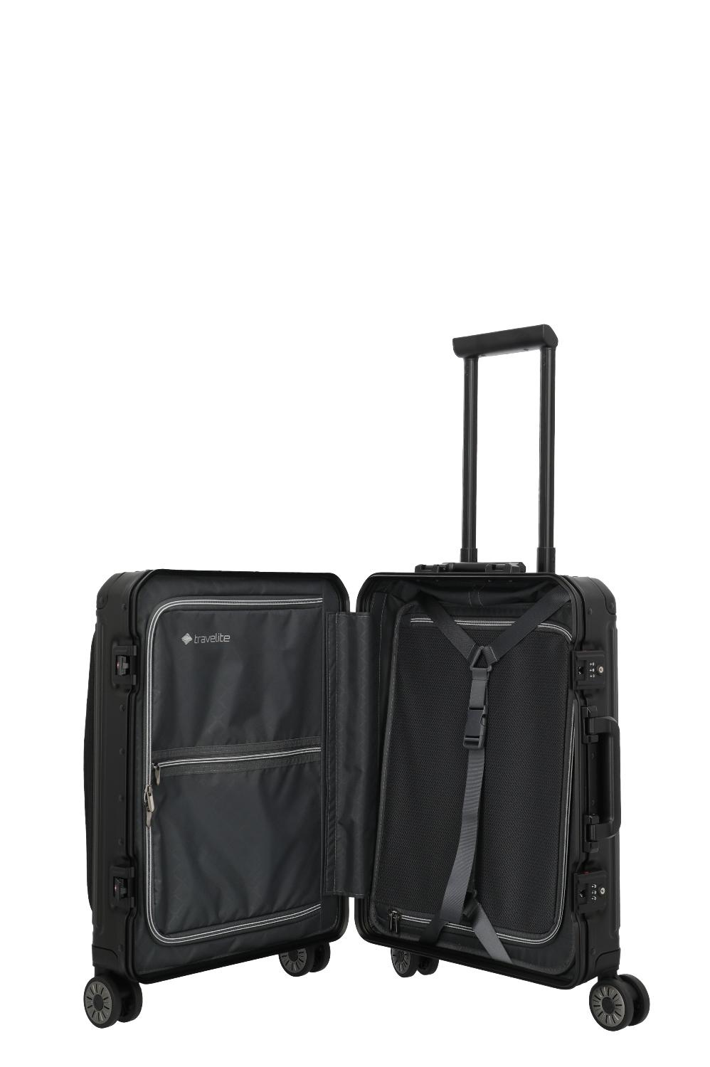 De Travelite Next 4 Wheel S Frontpocket is de ideale handbagagekoffer voor reizigers die waarde hechten aan snelheid, toegangsgemak en maximale bescherming. Deze stevige aluminium koffer kan tegen een stootje en biedt een luxe uitstraling gecombineerd met slimme functionaliteit, perfect voor zowel zakelijke trips als korte vakanties.