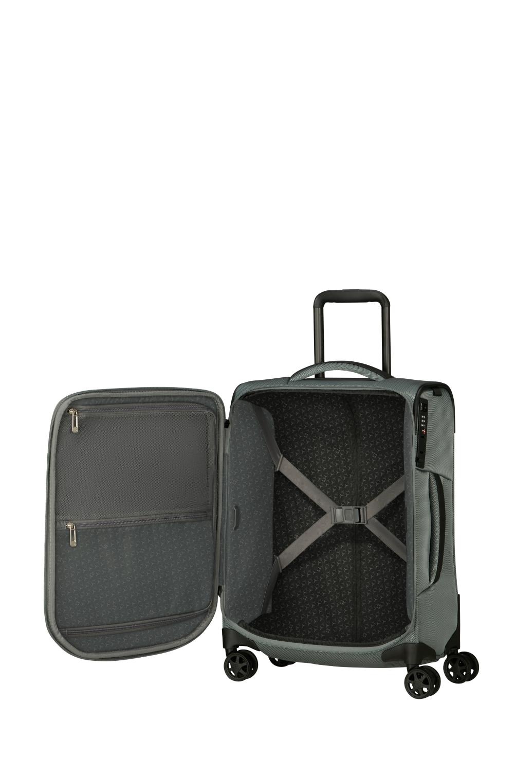 De Samsonite Respark spinner 55/40cm. (143328 A482 Sage Grey) is ideaal voor een korte vakantie of een weekendje weg! Je bagage berg je overzichtelijk op in het hoofdcompartiment. Dankzij de gekruiste pakriemen blijft de bagage op zijn plek tijdens het reizen. Je vervoert de spinner zeer comfortabel dankzij de vier roterende wielen en een telescopische trekstang. Eigendommen die je dicht bij de hand wilt houden kun je opbergen in een ritsvak op de voorzijde.