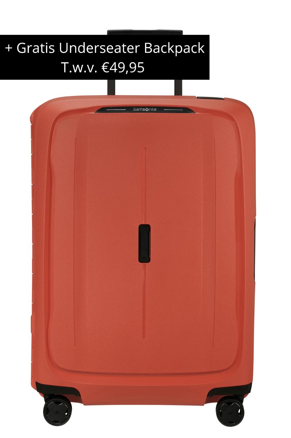 Ga jij binnenkort lekker een paar weken op reis of vakantie? Dan is de Samsonite Essens Spinner 69 dé perfecte koffer voor jou! De Samsonite Essens Spinner 69 is de tussenmaat in de Essens-serie. De koffer van gerecycled polypropyleen is uitermate geschikt als ruimbagagekoffer. De Samsonite Essens Spinner 69 biedt ruimte aan zo’n 88 liter aan inhoud en weegt zonder bagage slechts 3.7 kg. Ondanks dat de koffer van lichtgewicht is, gaat dat niet ten koste van de stevigheid van de koffer. Polypropyleen is van nature namelijk een stevige kunststof die erg goed tegen een stootje kan. Ideaal voor in het vliegtuig dus, want dit materiaal zal niet snel indeuken en kan goed tegen krassen!