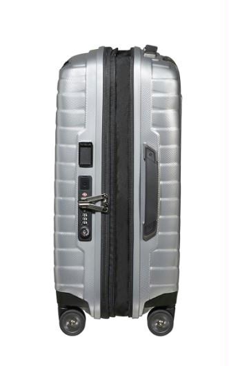 De Samsonite Proxis handbagage 55cm. (140087 1776 Silver) heeft een prachtig design en is ontworpen om aan al jouw behoeften te voldoen. De koffer is overzichtelijk om in te ruimen en voorzien van soepele wielen. Je kunt hem achter je aan trekken maar ook voor je uit duwen. De koffer is uitbreidbaar door middel van een rits en voorzien van geïntegreerde USB poort. Aan de zijkant bevind zich een slot met een TSA functie en een naamlabel.