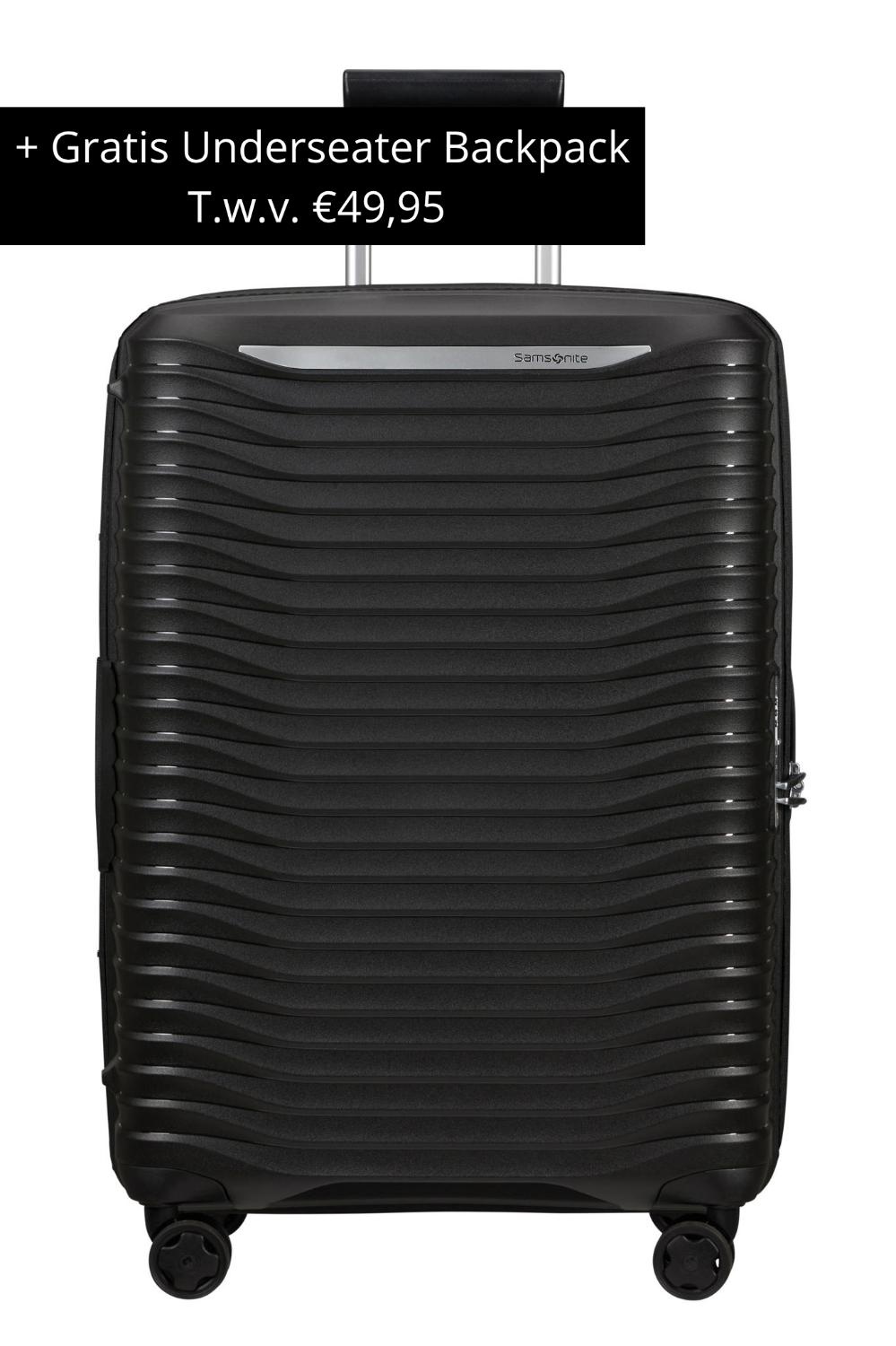 De Samsonite Upscape Spinner 68cm. (143109 1041 BLACK) is zowel sterk als licht in gewicht (slechts 3.2 kg!) dankzij het gebruik van stevig polypropyleen. Het interieur is gemaakt van gerecycled PET, de voering is uitneembaar en wasbaar, zo kun je jarenlang plezier hebben van deze koffer.